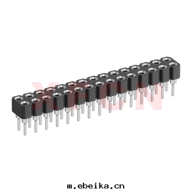 描述:圆(yuán)孔排母-2.54mm間(jiān)距,180°,DIP,30位,双(shuāng)排母座,H=3.0mm