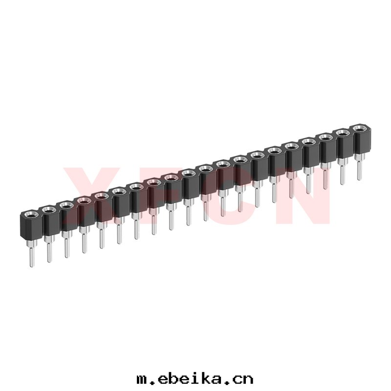 描述:圆(yuán)孔排母-2.54mm間(jiān)距,180°,DIP,20位,單排母座,H=3.0mm