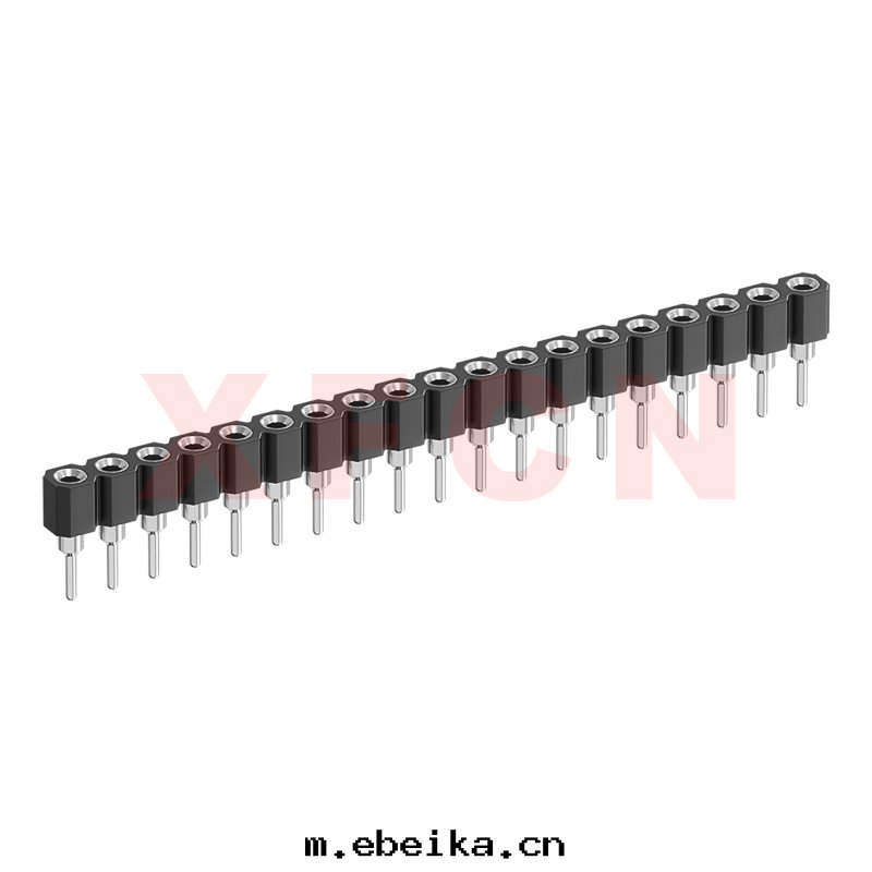 描述:圆(yuán)孔排母-2.54mm間(jiān)距,180°,DIP,19位,單排母座,H=3.0mm