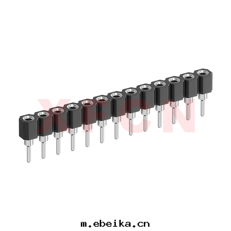 描述:圆(yuán)孔排母-2.54mm間(jiān)距,180°,DIP,13位,單排母座,H=3.0mm