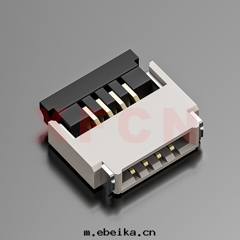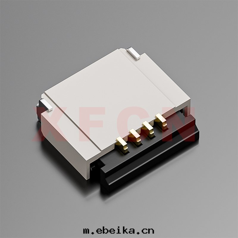 描述:FPC-0.5mm間(jiān)距,前(qián)插後(hòu)掀,04位,高(gāo)度(dù)1.0mm, 镀金(jīn)