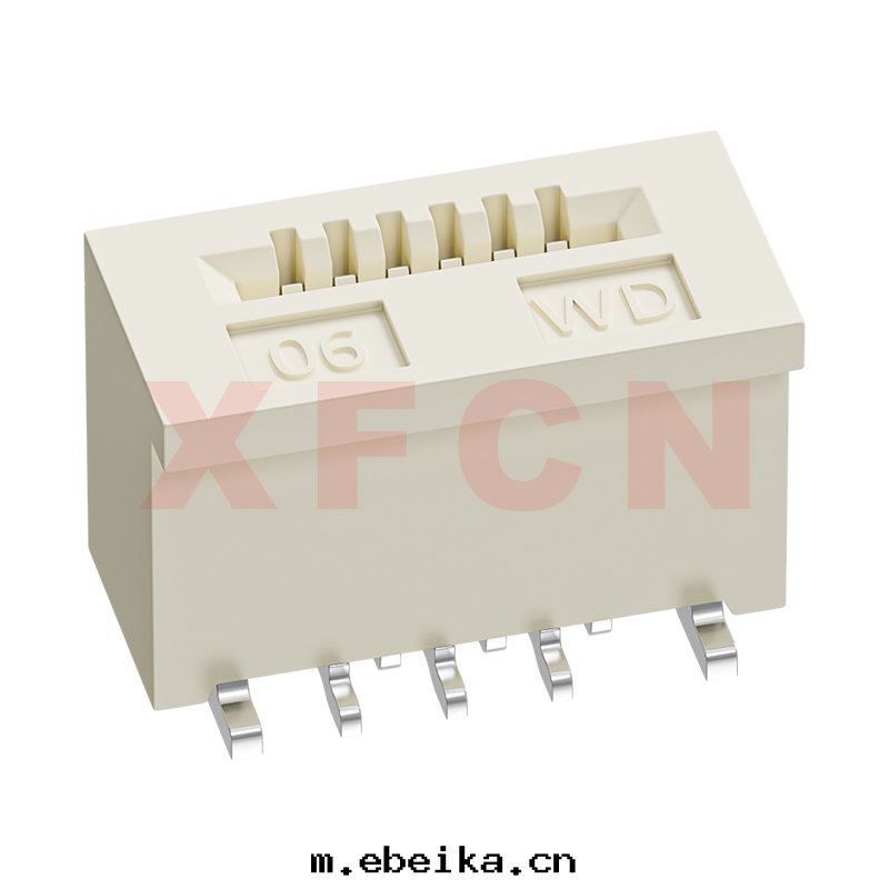 描述:FPC-0.5mm間(jiān)距,無蓋式,立貼正(zhèng)腳(jiǎo),6位,高(gāo)度(dù)4.0mm,