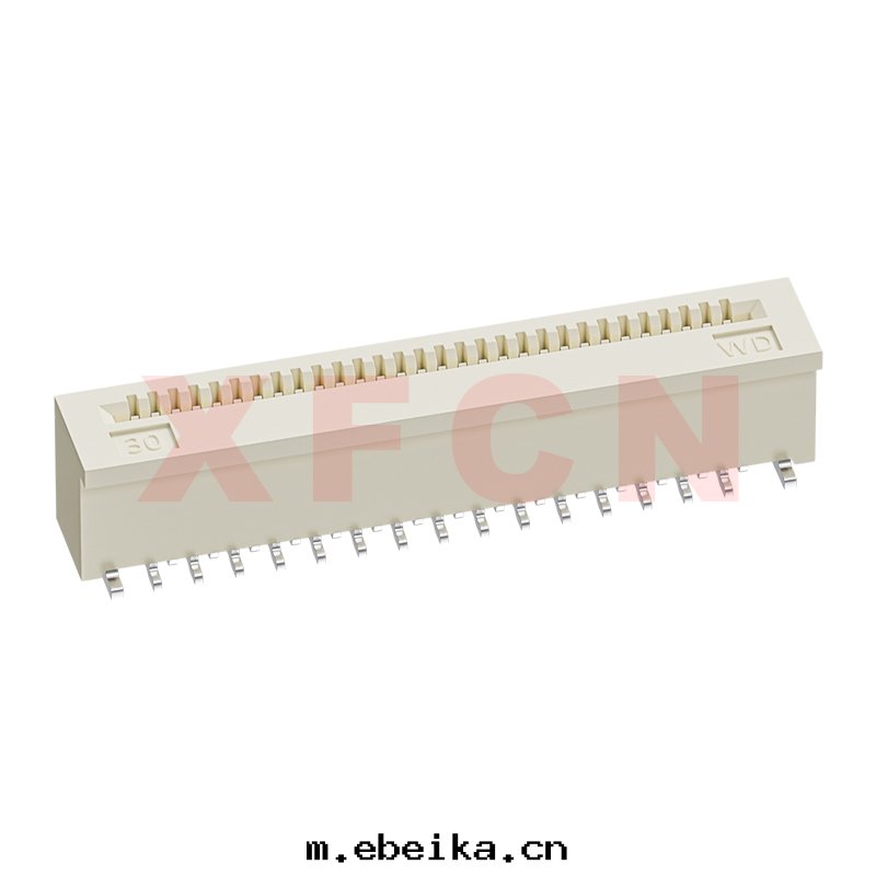 描述:FPC-0.5mm間(jiān)距,無蓋式,立貼正(zhèng)腳(jiǎo),30位,高(gāo)度(dù)4.0mm,